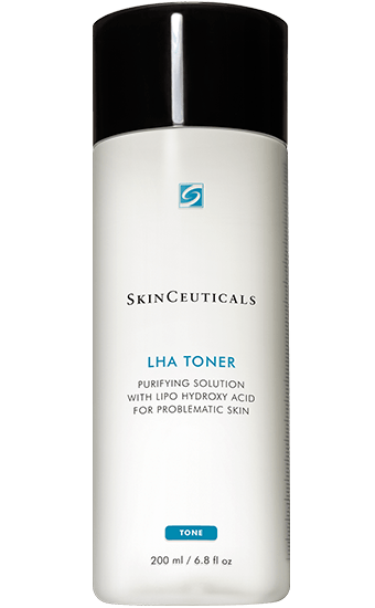 SkinCeuticals LHA Toner is your key to targeting aging skin prone to breakouts. The triple threat treatment is formulated with a low pH blend of lipo hydroxy acid (LHA), glycolic acid and salicylic acid to remove excess residue and dead skin cells while purifying clogged pores. The combination of ingredients is meant to work in harmony with the LHA Cleansing Gel and LHA Serum and to help prep skin for clinical procedures and professional treatments.